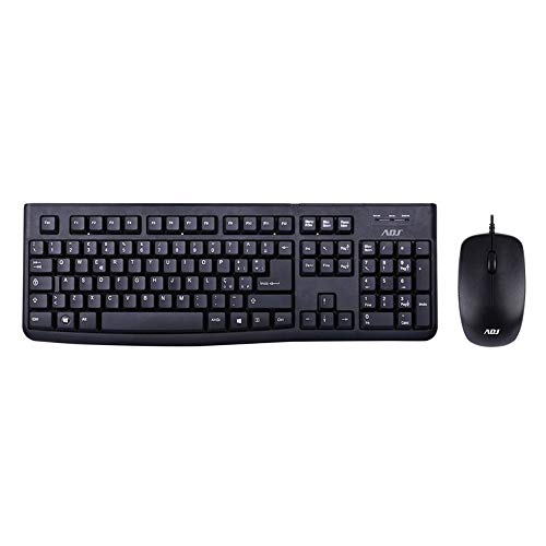 ADJ Pure KT131 Set Tastiera e Mouse Cablati USB, Layout Italiano QWERTY, per PC/Laptop/Notebook Windows, Cavo di 1.5 Metri, 105 Tasti, Ergonomico, Mouse 3D Ergonomico 1000DPI, Nero