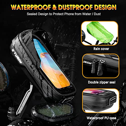 ️【Impermeabile & Alla Pioggia】- La porta smartphone moto è realizzata in PU ultraleggero ed elegante, materiale EVA con chiusura a doppia cerniera sigillata, che assicura che l'acqua non fluisca nella borsa e offre una copertura antipioggia gratuita che protegge il telefono da pioggia, neve, fango e polvere.(❤Si prega di ricordare: Non è progettato per essere immerso in acqua o sotto la pioggia battente).