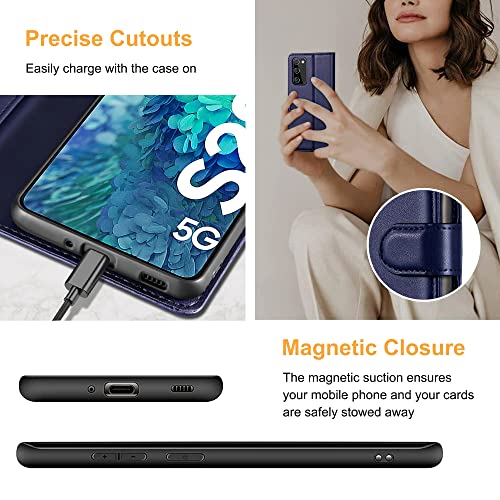 Kuafcase Cover Samsung Galaxy S20 FE Flip Custodia in Pelle Case Portafoglio [con pellicola protettiva Galaxy S20 FE] [Carta Fessura] [Supporto] Magnetica Cover a Libro per Samsung S20 FE, Blu
