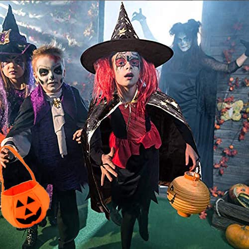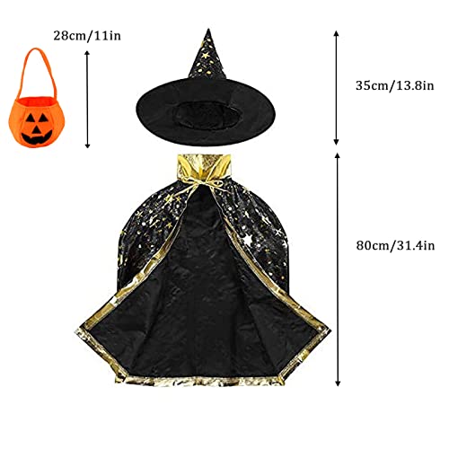 Mantello da Strega di Alta Qualità: Realizzato in tessuto sintetico di alta qualità, è morbido ed elastico. Il pacchetto include mantello, cappello da strega e sacchetto di caramelle alla zucca. Progettato per i bambini che interpretano il ruolo di strega o mago e si divertono durante questo felice Halloween. unisex bambini ragazzi ragazze