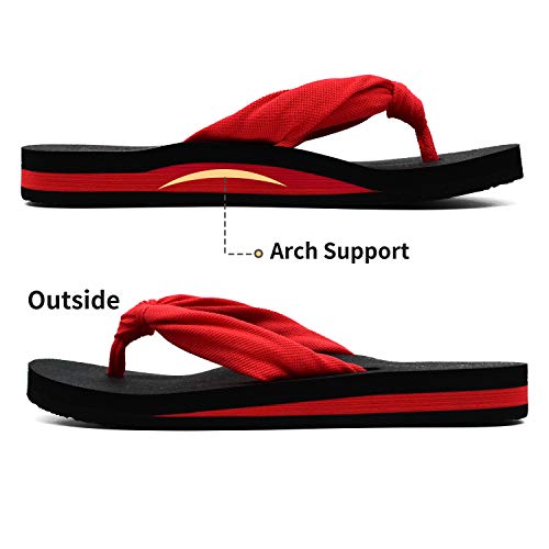 KuaiLu Infradito Donna Estive Comode Stoffa Righe Ciabatte Infradito Supporto Arco Plantare Sandali Infradito Spiaggia Piscina Flip Flop Mare Leggere Antiscivolo Gomma Suole Tutto rosso 37
