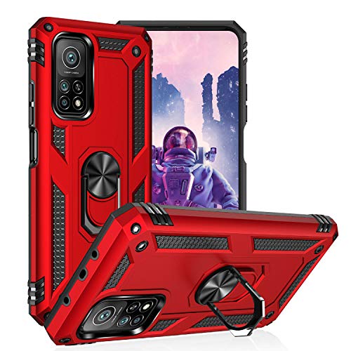 KUAWEI Custodia Cover Per Xiaomi Mi 10T Pro 5G, 360° Metallo Ring Kickstand Protettiva Cover, supporto magnetico da auto, PC TPU BumPer Cover Per Xiaomi Mi 10T Pro 5G 6.67" (Rosso)
