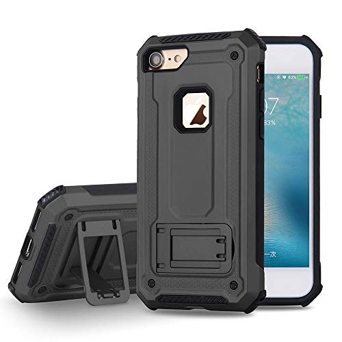 KUAWEI Custodia per iPhone 7 iPhone 8 Dual Layer Custodia Ibrida Rigida Morbido Armatura Resistente agli Urti con Supporto e asportabile di Protezione per Apple iPhone 7 iPhone 8 4.7" (Grigio)