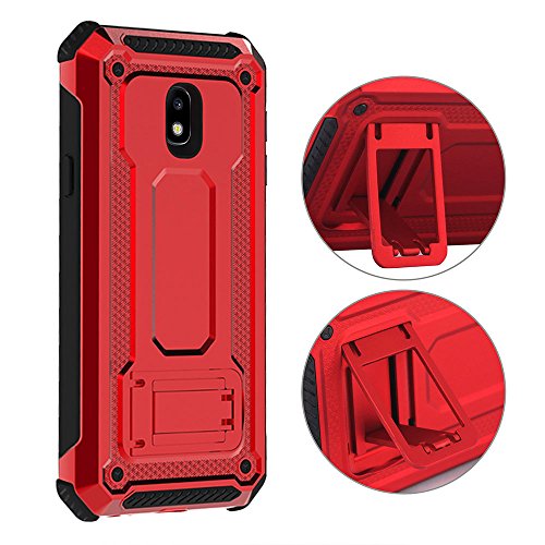 KUAWEI Custodia per Samsung Galaxy J3 2017 Armatura Rugged Heavy Duty Cover Doppio Strato TPU + PC Antiurto Protettiva Case per Galaxy J3 2017 J3 PRO J330 5" (Rosso)