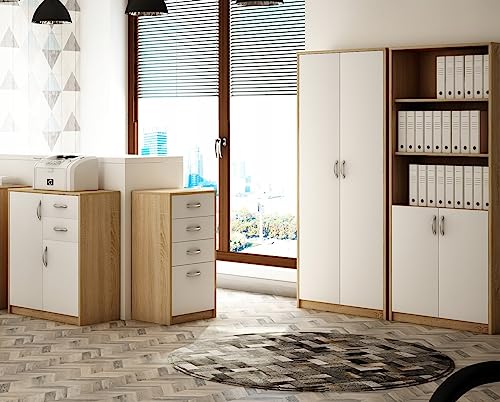 KUBUTKU Cassettiera Armadio per documenti Armadio per ufficio con 4 cassetti, 85 x 45 cm, per soggiorno, sala da pranzo, camera da letto, corridoio, ufficio, credenza (bianco Sonoma)