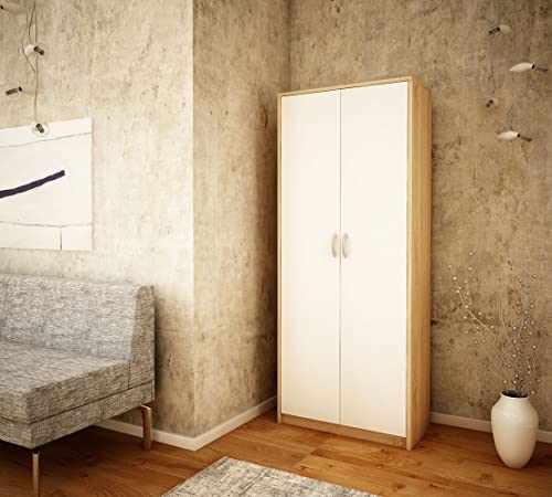 KUBUTKU Pratico armadio da 180 cm, con 2 ante, 6 ripiani, grande armadio multiuso per ufficio, per la casa (bianco/Sonoma)