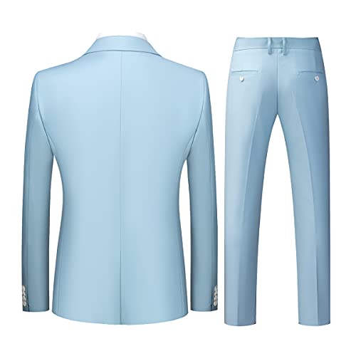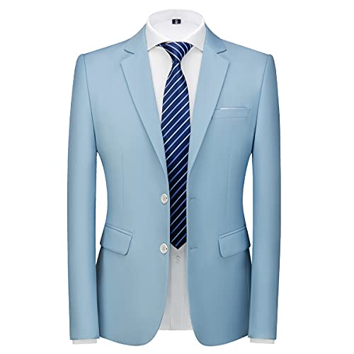 KUDORO Abito da Uomo 2 Pezzi Slim Fit Abito Formale Abiti da Sposa Puro Colore Due Bottoni Abito da Smoking Blazer Pantaloni(Azzurro,3XL)