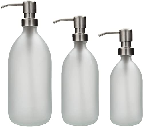 REFILLABLE PAINTED MATT WHITE GLASS BOTTLES: Refill with your chosen product, reducing costs and the need for plastics in your home or business. Ideal for soaps, shower gel, shampoo, and oils.