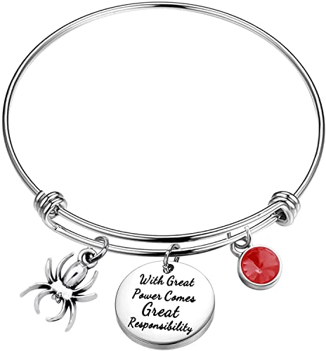 KUIYAI Braccialetto con scritta in inglese "With Great Power Comes Great Responsibility", regalo per la fidanzata, migliore amica, regalo di compleanno, regalo di film, Acciaio inossidabile