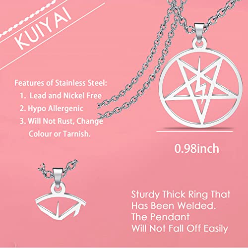 KUIYAI Gioielli Luciferiani Regalo Satanico Invertito Pentagramma con Fulmine Satanico Collana, 3