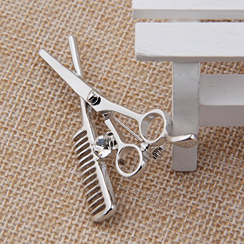 Kuiyai, spilla con forbici da parrucchiere e pettine e Acciaio inossidabile, colore: Argento, cod. 9th-ScissorsCombPin