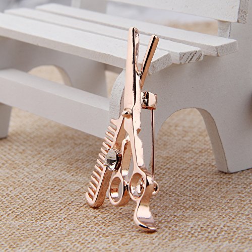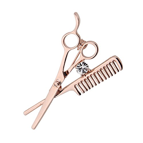 Kuiyai, spilla con forbici da parrucchiere e pettine e Acciaio inossidabile, colore: Oro rosa, cod. 9th-ScissorsCombPin