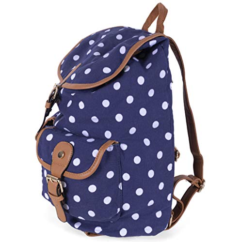 Kukubird POLKA DOT Backpack SPOTTY Rucksack School Bag - DOUBLE POCKET (NAVY)
