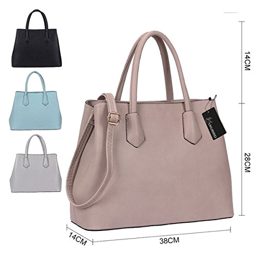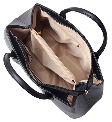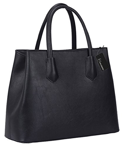 Kukubird Rikka High Quality Faux Leather Two Straps Design Top-Handle Shoulder Tote Handbag - Black