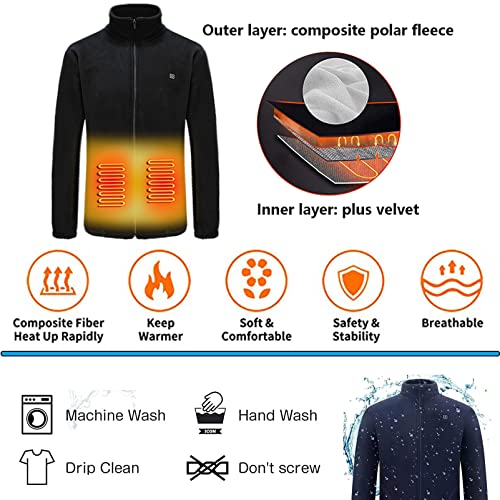 KUMADAI Giacca Riscaldata Uomo Donna Felpa Pile Riscaldata Elettrico Felpe Zip Riscaldato USB Giacca Antivento Giacche Invernali Felpa Sweatshirt Invernale Senza Cappuccio per Sci Caccia,Nero,M