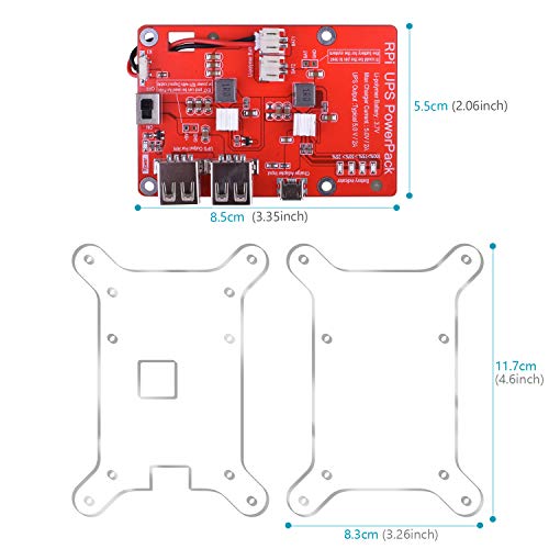 Progettato in particolare per Raspberry pi, fa funzionare Raspberry pi fino a 9 ore. Doppia uscita USB. Una per Raspberry pi, l'altra può essere connessa con schermo LCD