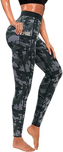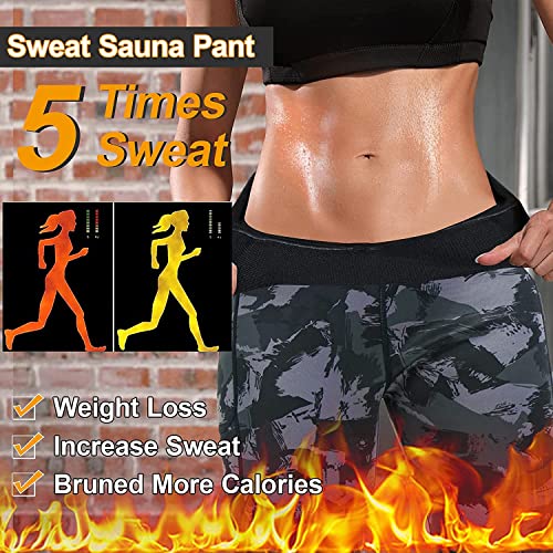KUMAYES Pantaloni Sauna Dimagranti Donna, Pantaloni di Perdita Pantaloni Sauna Neoprene Leggins Sportivi Donna Push Up Hot Thermo Sauna Sudore Shaper per Fitness (S, Camuffare)
