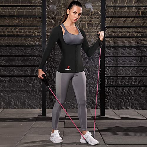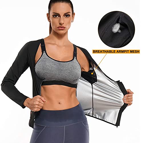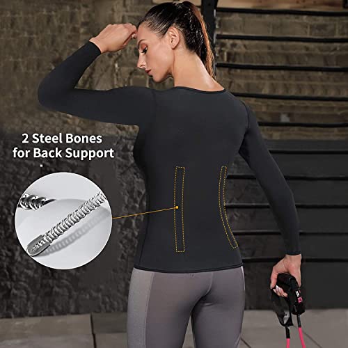 KUMAYES Tuta Sauna Dimagrante Donna Maglietta per Sudare di Sudorazione Manica Lunga Tute Dimagranti Sportive Allenamento Abbigliamento Palestra (3XL, Nero)