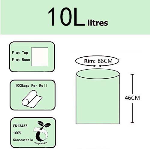 Kumoya Sacchetti compostabili BioBag 6Litri/10 Litri per pattumiere da Cucina Caddy, 100 Sacchetti (10L)