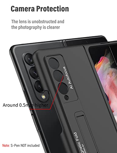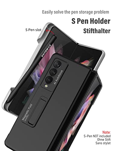 KumWum Custodia per telefono per Samsung Galaxy Z Fold 3 5G ultra sottile con supporto per penna S Cavalletto integrato - Nero