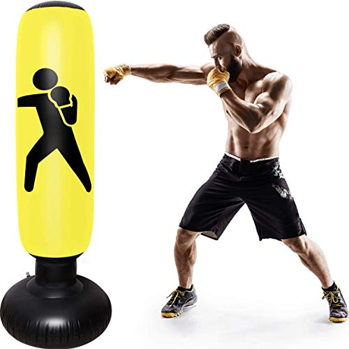 Il nostro sacco da boxe gonfiabile è progettato per tenerti in forma o divertirti durante la boxe o l'allenamento per il karate. Il sacco da boxe funziona anche per alleviare lo stress in modo sicuro e atletico. Il sacco da boxe è alto 160 cm e può essere utilizzato quotidianamente da bambini o adulti per praticare sport.