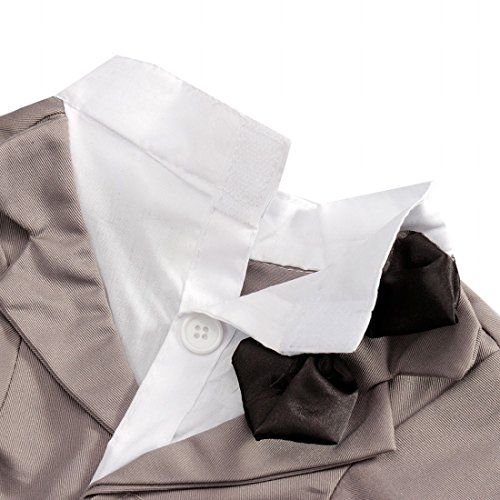 Kungfu Mall tuxedo formale classico a doppio petto grigio per cani, con camicia, giacchetta, colletto e papillon, ideale per matrimoni, x-large
