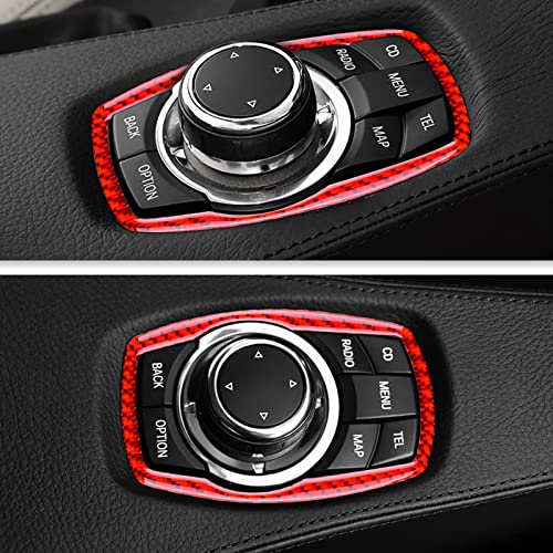 KUNGKIC Mascherina per Console Centrale Auto, Radio Multimedia Pulsante di Controllo Adesivo in Fibra di Carbonio, Accessorio Decorativo per BMW Serie 6 E63 E64 2004-2010 (Rosso)