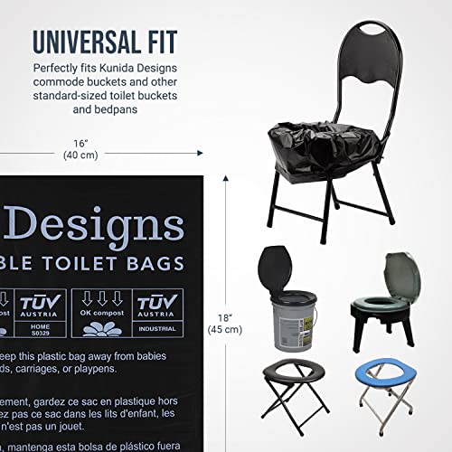 Kunida Designs Borsa igienica Portatile biodegradabile - 30 Fodere per comode da Campeggio compostabili - 8 galloni 23x26 Pollici - 1,18 Mil - ASTM D6400 e Ok Compost Certified