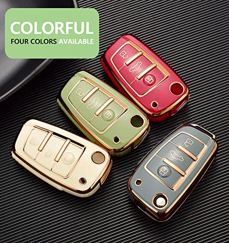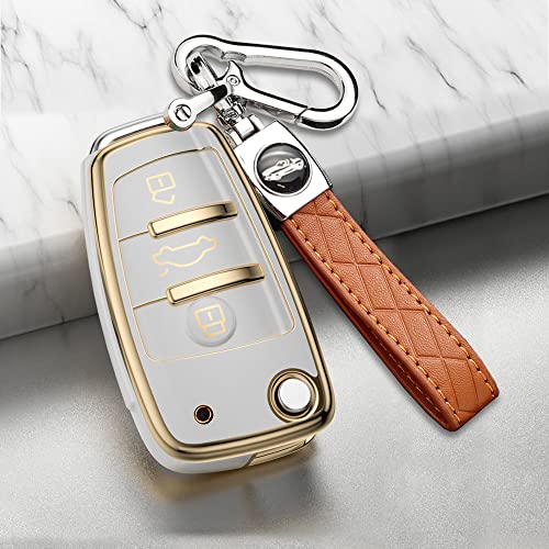 KUNIO Flip Key Fob Cover adatta per Audi C5 C6 R8 A1 A3 A4 A5 A6 A7 Q3 Q5 Q7 S6 B6 B7 B8 8P 8V 8L TT TPU Portachiavi Portachiavi Chiave a Distanza Shell Portachiavi Protector 3 Pulsanti Bianco