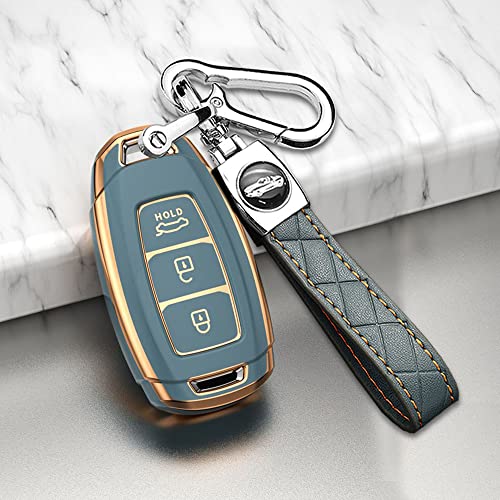 KUNIO Custodia per portachiavi adatta per Hyundai i30 Ix35 Kona Encino Solaris Azera Grandeur Ig Accent Santa Fe 2018 2019 TPU Key Shell portachiavi portachiavi 3 pulsanti A Grigio