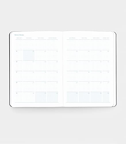 Formato pagina: giornaliero. Un giorno per pagina in una trama a punti e con orari dalle 7:00 alle 20:00 per pianificare in modo migliore. Sabato e domenica in un'unica pagina.