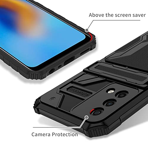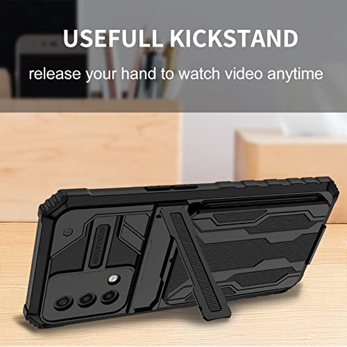 Kunshark per Cover Oppo A74 4G/ A95 4G/ F19, Custodia con interna TPU e hard PC back portacarte case, con [Supporto][Slot per schede] Armour Antiurto Bumper - Nero