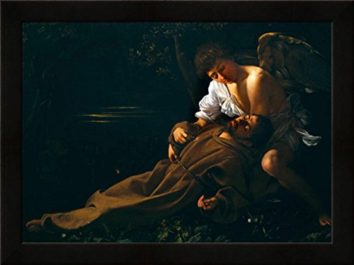 Kunst für alle 'Immagine incorniciata di Michelangelo Merisi Caravaggio la Stigmatisation des HL.Francesco, Stampata nel Quadro Immagini Fatti a Mano di Alta qualità, 40 x 30 cm, Nero Opaco