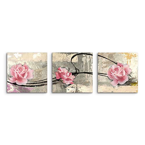 Mon Kunst splendido Fiore Rosa Stampa Artistica su Tela Wall Art Home Decor 40 * 40 cm X3, Black, 40cmx40cmx3 UnFramed