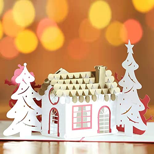 KUNSTIFY, biglietto di Natale con pop-up 3D, regalo per fidanzate, da uomo e da donna, per auguri di Natale (casa a Natale)