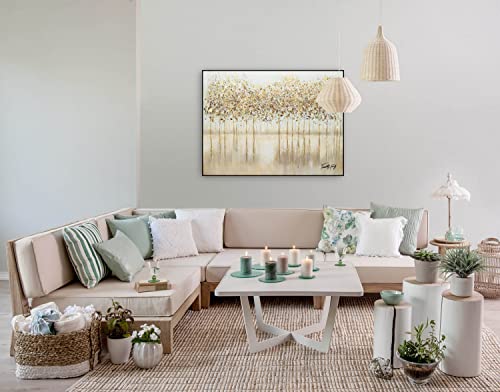 Kunstloft Quadro su tela | 100% DIPINTO A MANO | 100x75cm | Dipinto 'Acqua calma' | Foresta & Alberi | Oro | Arte moderna