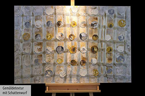 Kunstloft Quadro su tela | 100% DIPINTO A MANO | 120x80cm | Dipinto 'In armonia con me stesso' | Astratto | Oro Argento | Arte moderna