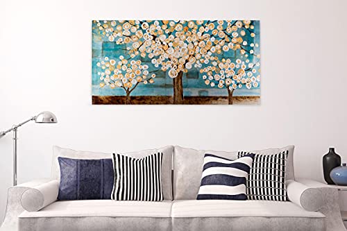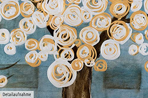 Kunstloft Quadro su tela | 100% DIPINTO A MANO | 140x70cm | Dipinto 'Malinconia in blu' | Foresta & Alberi | Petrolio Marrone | Arte moderna