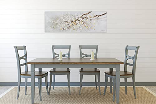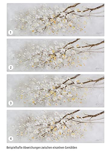 Kunstloft Quadro su tela | 100% DIPINTO A MANO | 150x50cm | Dipinto 'Tra i rami intricati' | Fiori | Bianco | Arte moderna