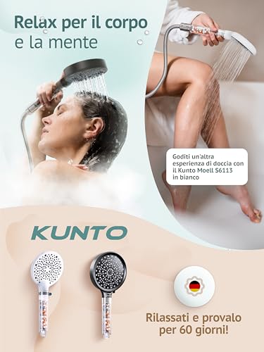 KUNTO soffione doccia con tubo a risparmio idrico con funzione a pioggia - cornetta doccia anticalcare con 3 tipi di getto - soffione per doccia con filtro per una pelle sana e morbida