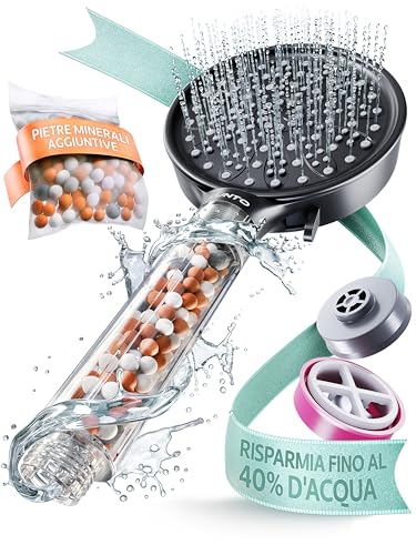 MIGLIORA LA SALUTE DI PELLE E CAPELLI: Il soffione per doccia con filtro dispone di tre tipi di perle minerali che filtrano impurità e sostanze tossiche, garantendo non solo acqua più dolce, ma anche pelle e capelli sani.