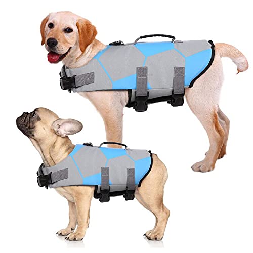 Kuoser - Giubbotto salvagente per cani Ripstop, regolabile, modello di calcio per cani, gilet galleggiante di sicurezza per animali domestici, per cani di taglia piccola, media e grande