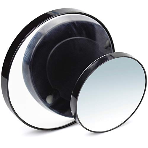 Kupink 2 pezzi Specchio Cosmetico Ingranditore, ingranditore specchio x10 con ventose per Trucco,Rasatura,Rimozione di Punti Neri Imperfezioni,interno 8 cm/13cm(Nero)