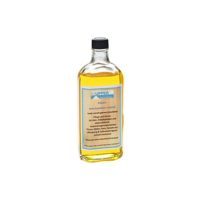 Kupper - Olio di lino per la cura dei piani di lavoro (250ml) - pressato a freddo (degommato), ideale per tutti i piani di lavoro Küpper Questo olio per la manutenzione dei piani di lavoro è aperto e poroso e penetra in profondità. L'olio di lino si asciuga rapidamente. Cura e protezione perfetta per i piani di lavoro in legno e molte altre applicazioni (porte, mobili, sughero, parquet, ecc.) Natura pura senza solventi e aromi. Contenuto sufficientemente min. circa 3,6 metri quadrati. Contenuto: 250 ml