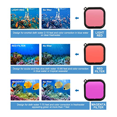 【Filtro Snorkel + Inserti anti-appannamento】 Il kit filtro da 3 pezzi offre un'eccezionale correzione del colore e migliora il contrasto in varie condizioni di video e fotografia subacquea;