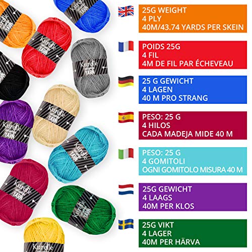 Kurelle Gomitoli di Acrilica Filato (20 Pezzi) - 25 Grammi, 40 Metri per Gomitolo - Colori Assortito Perfetto per Progetto di Uncinetto e Maglia