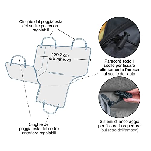 RESISTENTE: Resistente all'acqua e alle macchie, protegge i sedili della tua auto da peli, polvere e qualsiasi altro disordine che il tuo cane può fare in qualsiasi condizione atmosferica