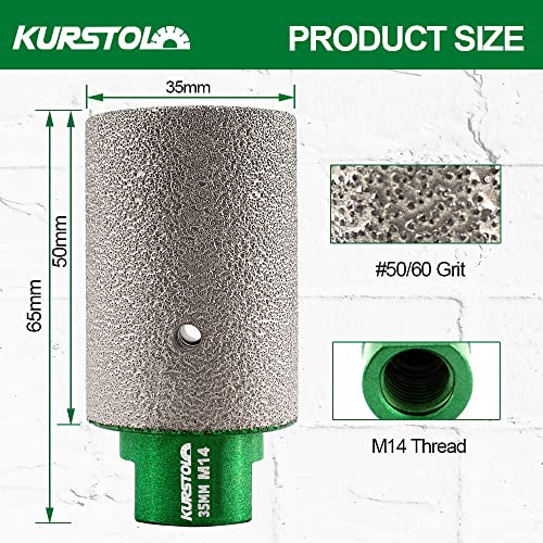 KURSTOL Fresa Diamantata - diametro 35 mmXM14 filettatura, per ingrandire la forma rotonda conica, foro esistente di porcellana, ceramica dura, granito, marmo piatto