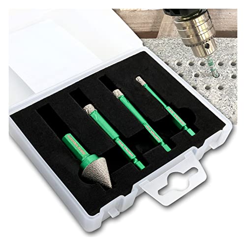 KURSTOL Punta per Trapano Diamantata Set - 3pz 6/8/10mm punte diamantate Gambo a Cambio Rapido+20mm Fresa Diamantata per Porcellana Granito Piastrella Marmo Taglio a Secco