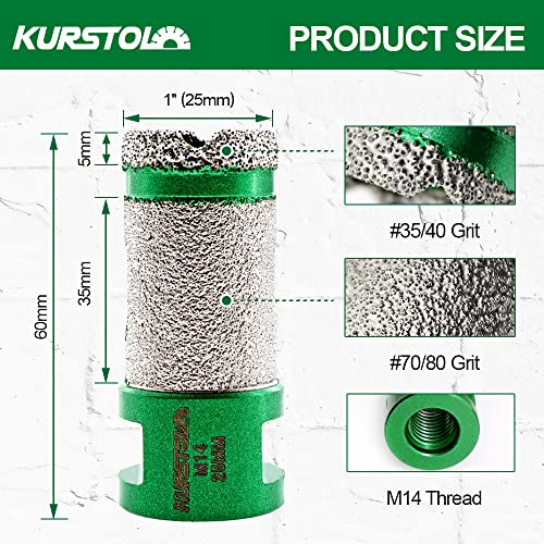 KURSTOL Punta per Trapano Diamantata - 2pz 25mm fresa per piastrelle con filettatura M14 per piastrelle per foratura a secco Porcellana Ceramica Granito Pietra Marmo Vuoto Brasato Diamante Drill Bit